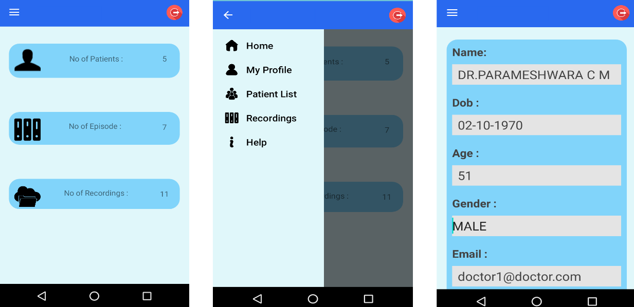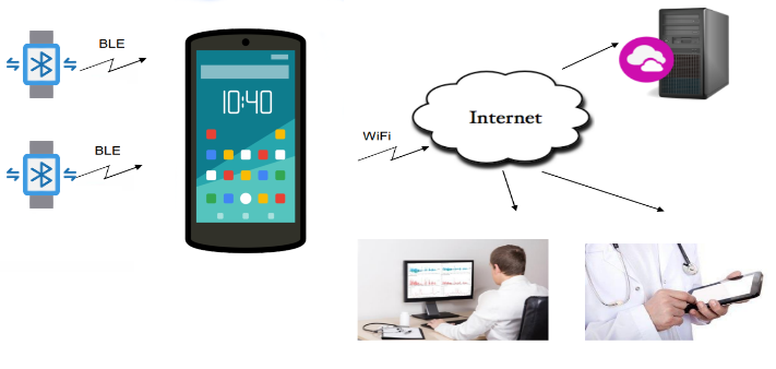 Its includes both Cloud Application with Dashboard view and Mobile-App on Android mobile phone, Internet connection enabled through WiFi router or 3G/4G connection on the mobile. The Cloud application shows the patient's records and visualises the data in a graphical view. With the help of the mobile app, the ECG devices data recordings can be done via Bluetooth. Every recording data is stored and sent to the cloud app for analysis and graphical view . This application runs with internet connection but while making a recording if the network drops those data will be collected and stored , the stored data can be uploaded manuallyater.